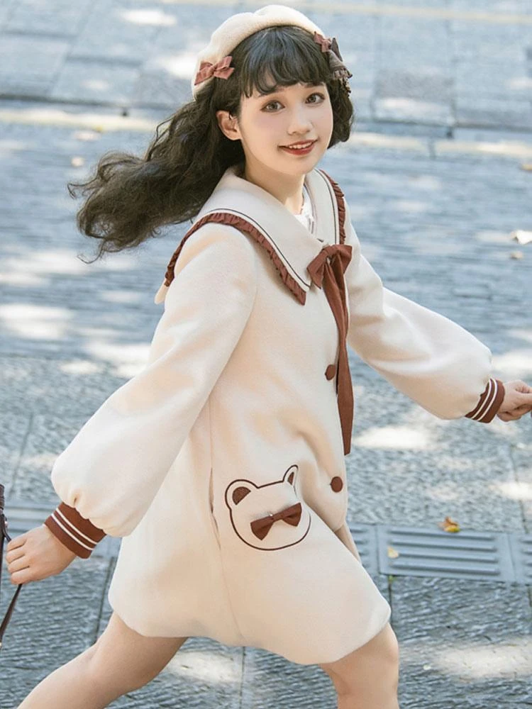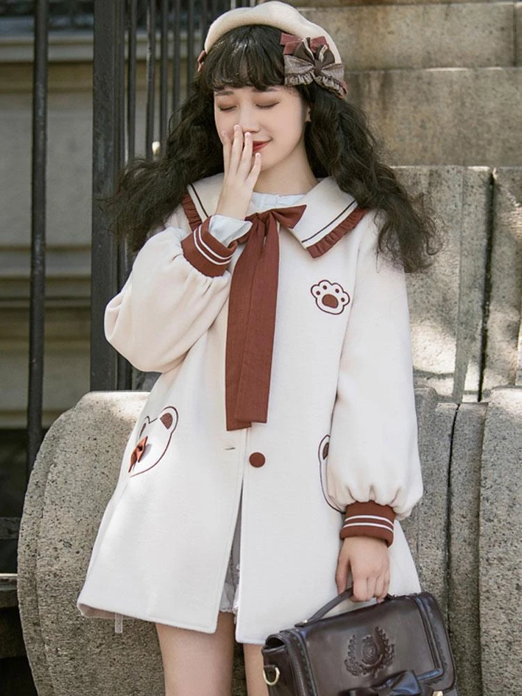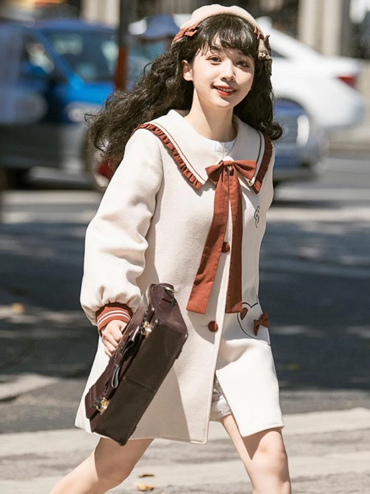 Sweet Lolita Coats Ecru White Bows Polyester Overcoat Coat Winter Lolita Outwears