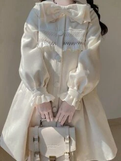 Sweet Lolita Coats Ecru White Coat Ruffles Overcoat Polyester Fall Lolita Outwears