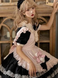 Be the first to review “Sweet Lolita Dress Apron Bows Polka Dot Polyester Short Sleeves Black Lolita One Piece Dress” Cancel reply