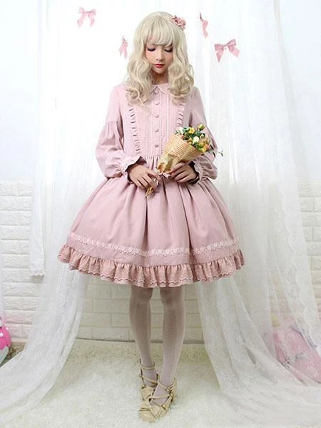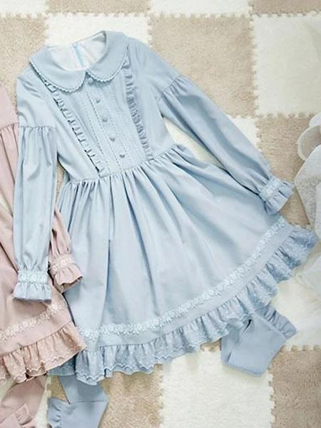 Sweet Lolita Dress OP Turndown Collar Ruffles Mid Calf One Piece Lolita Dress