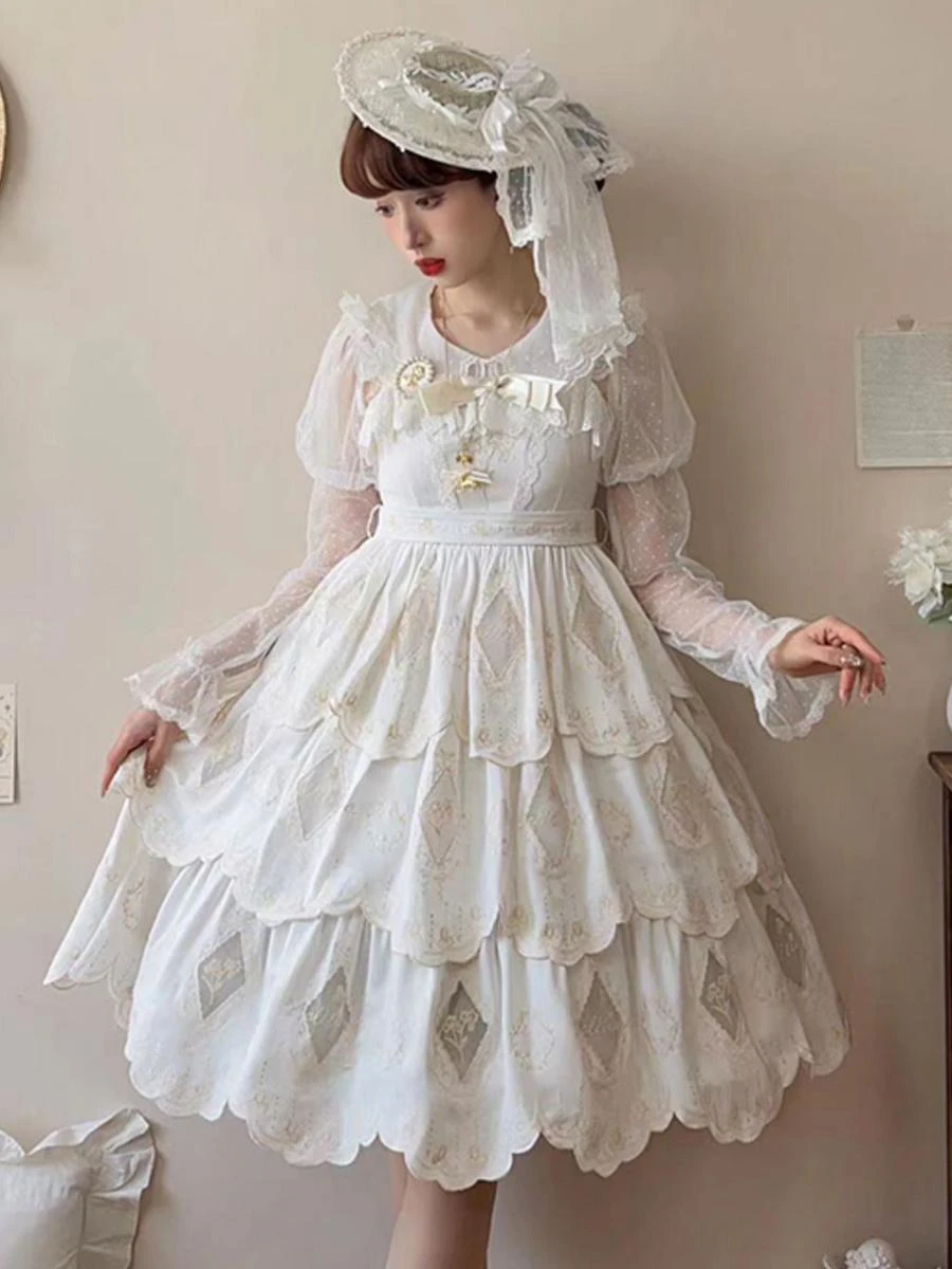Sweet Lolita Dress Polyester Sleeveless Ruffles Sweet Jumper Lolita Dress