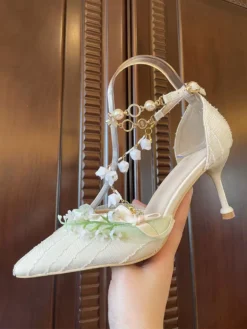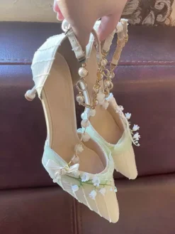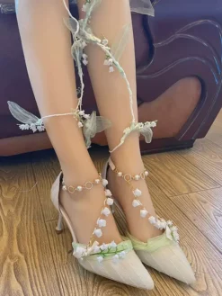 Be the first to review “Sweet Lolita Footwear Apricot Flowers Pearls Chains Pointed Toe Textile Lolita Shoes” Cancel reply