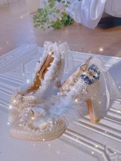 Be the first to review “Sweet Lolita Footwear Champagne Pearls Bows Lace PU Leather Chunky Heel Lolita Pumps” Cancel reply