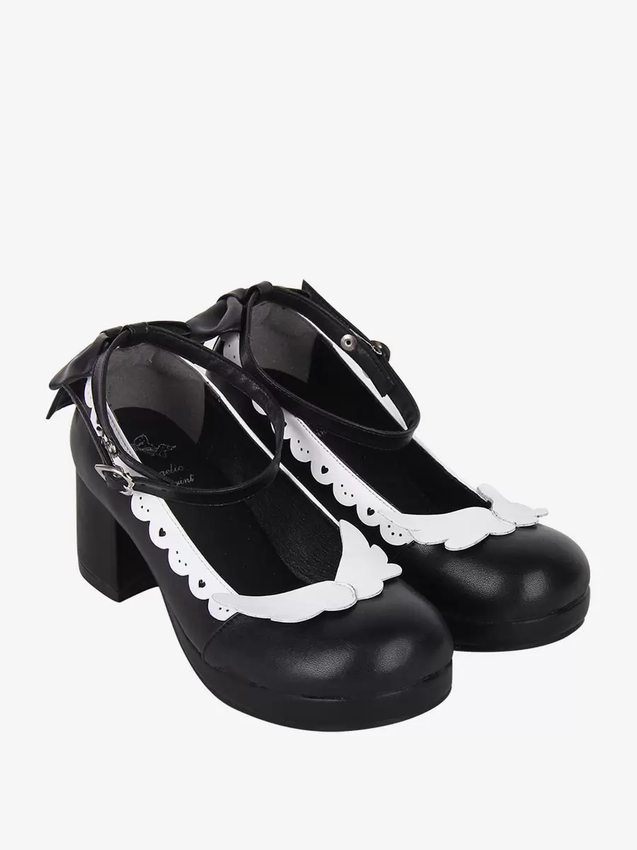 Sweet Lolita Footwear White Bows Bow PU Leather Chunky Heel Lolita Pumps