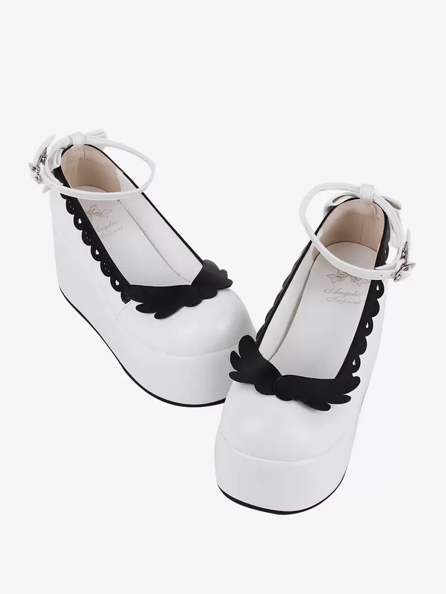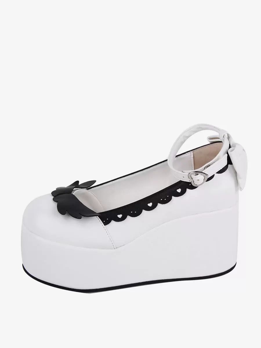 Sweet Lolita Footwear White Two-Tone Butterfly Round Toe PU Leather Lolita Pumps