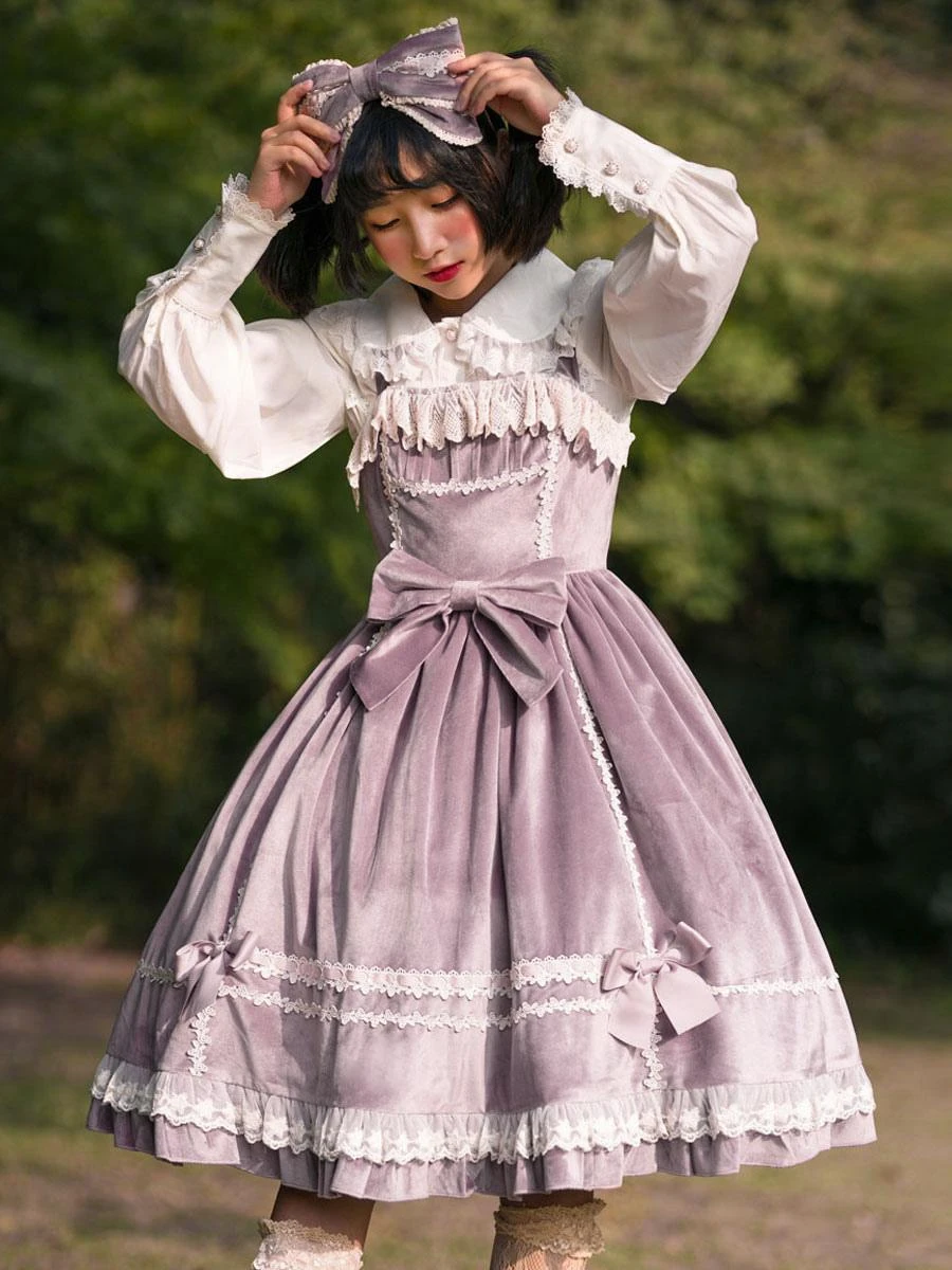 Sweet Lolita JSK Dress Fairytale Infanta Sleeveless Lace Burgundy Lolita Jumper Skirts