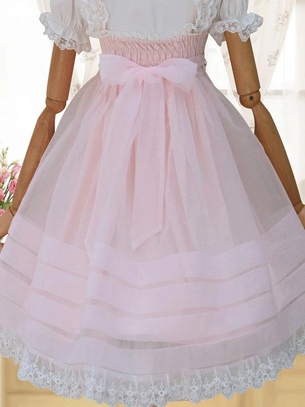 Sweet Lolita JSK Dress Organza Lace Bow Pink Lolita Jumper Skirt