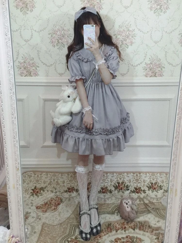 Be the first to review “Sweet Lolita OP Dress Chiffon Ruffle Pleated Grey Lolita One Piece Dress” Cancel reply
