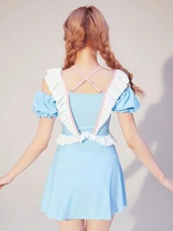 Sweet Lolita Outfits Light Sky Blue Bows Ruffles Short Sleeves Jumpsuit