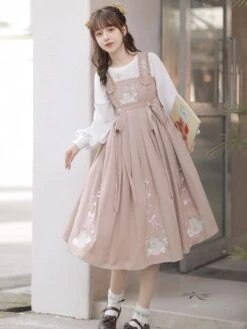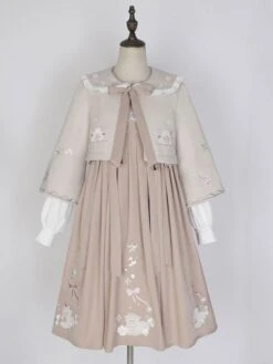 Sweet Lolita Outfits Pink Embroidered Bows Long Sleeves Overcoat Jumper