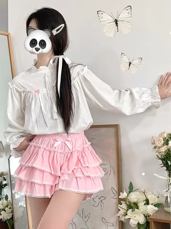 Sweet Lolita Outfits Pink Ruffles Bows Long Sleeves Top Skirt