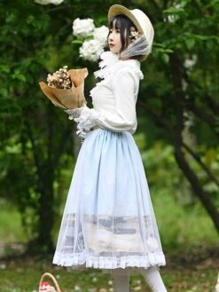Sweet Lolita Overskirt Lace Light Sky Blue Tea Party Daily Casual Lolita Skirts