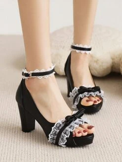 Be the first to review “Sweet Lolita Sandals Black Bows Ruffles PU Leather Peep Toe Lolita Summer Shoes” Cancel reply