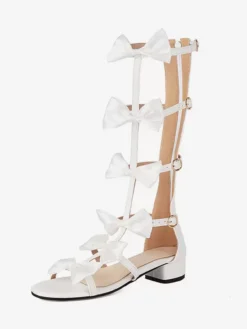 Sweet Lolita Sandals Bows Round Toe PU Leather White Lolita Summer Shoes