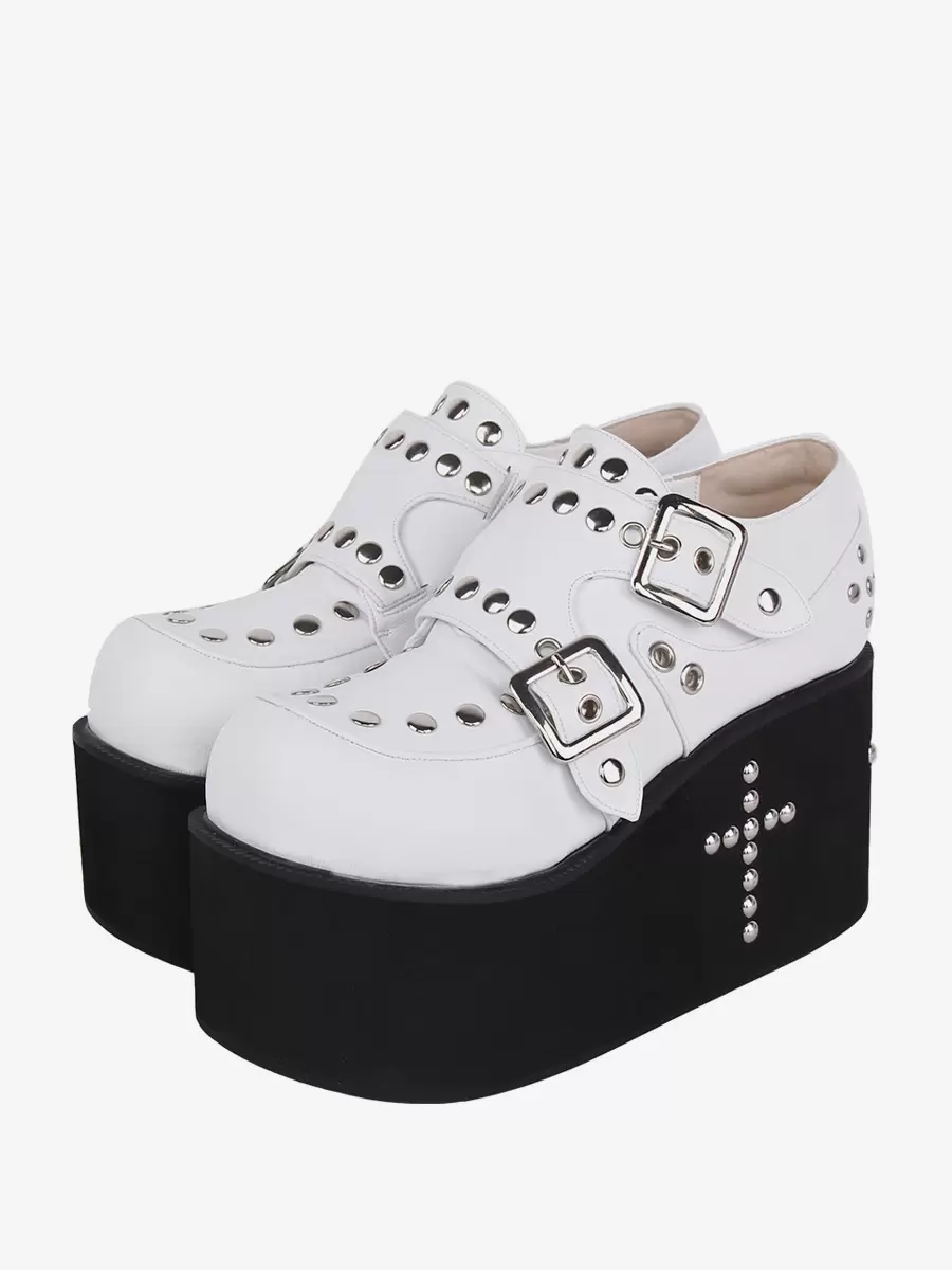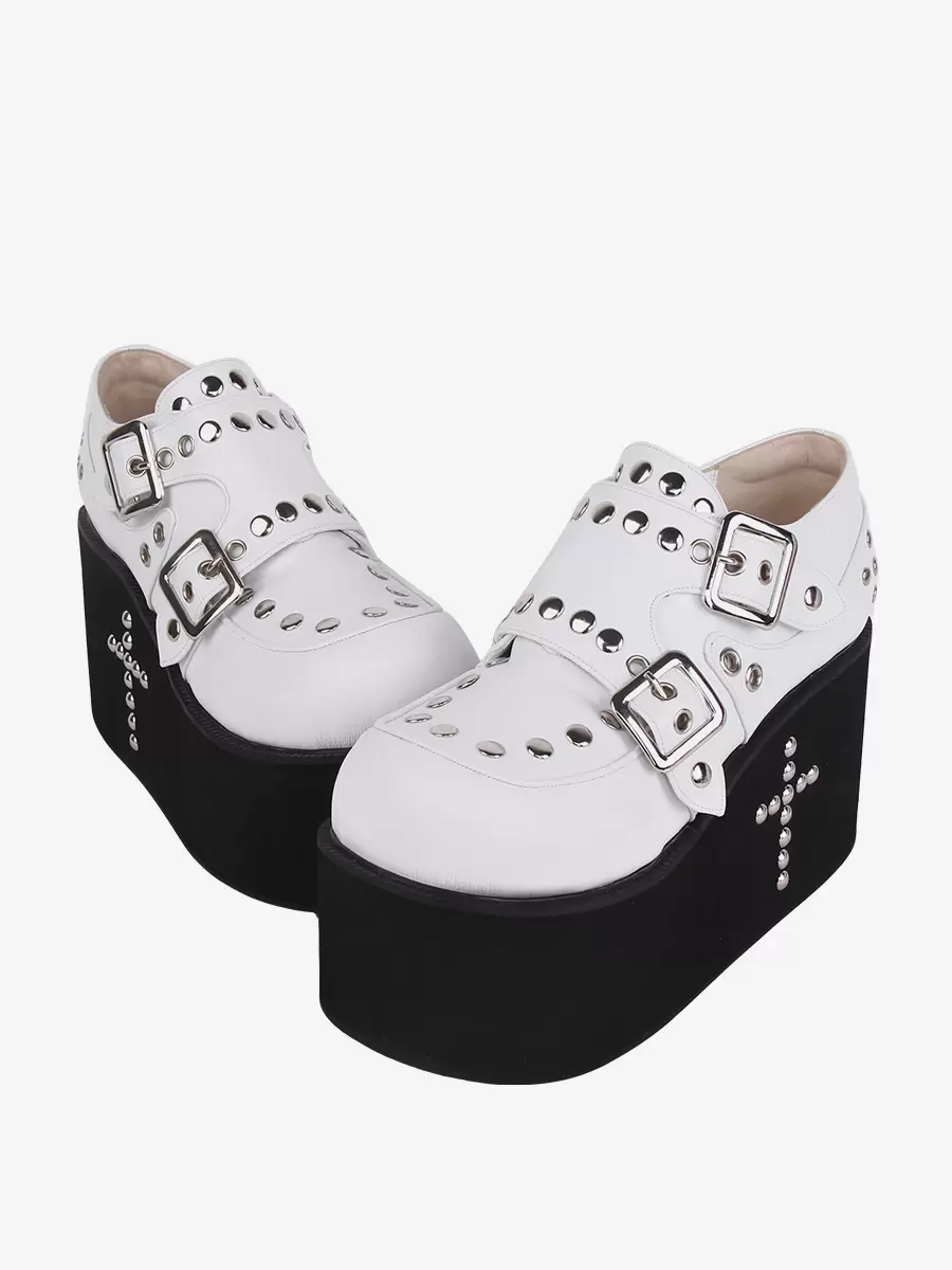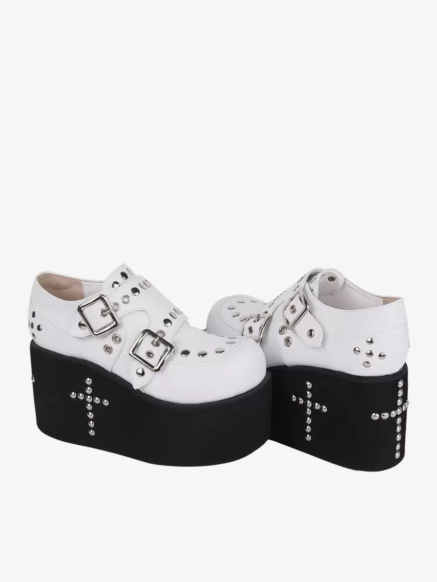 Sweet Lolita Sandals Grommets Round Toe Metallic PU Leather White Lolita Summer Shoes