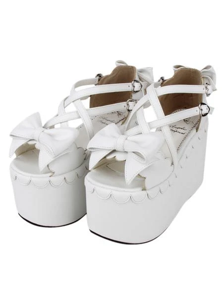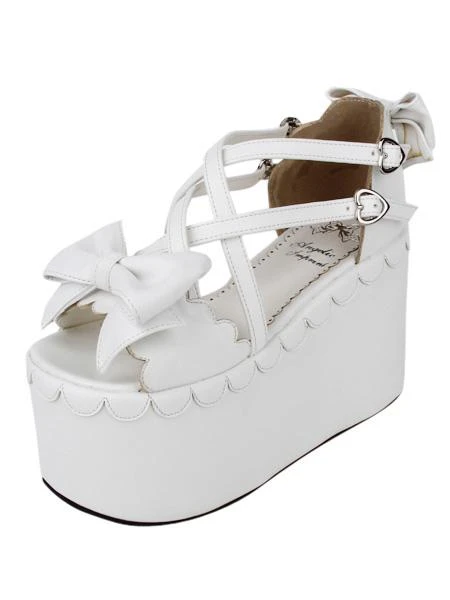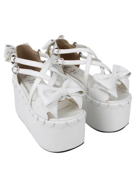 Sweet Lolita Sandals High Platform Shoes Bows Decor Heart Shape Buckles