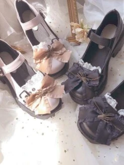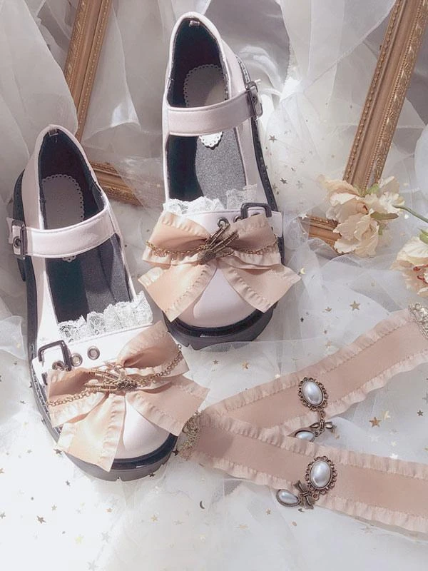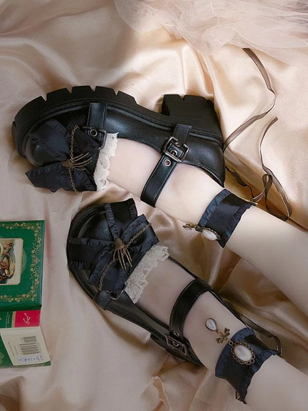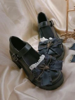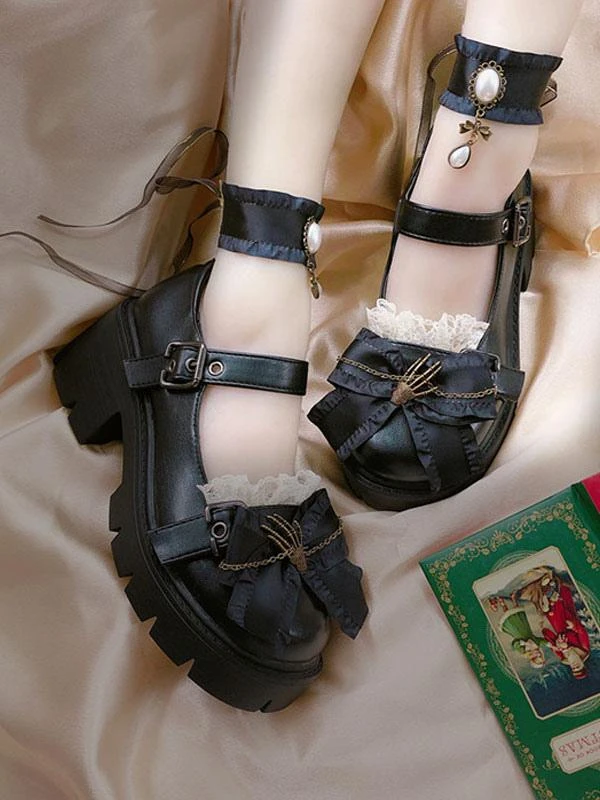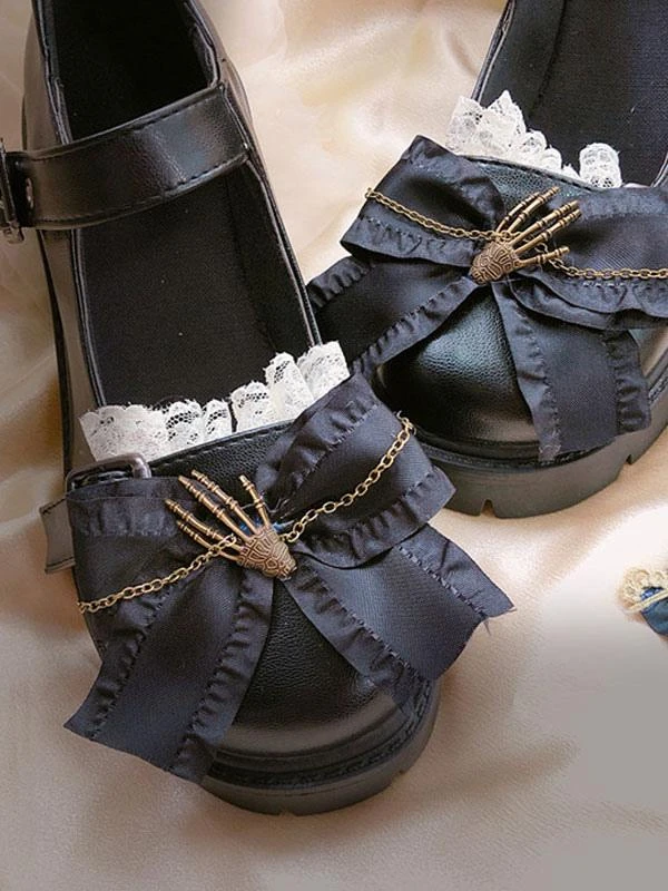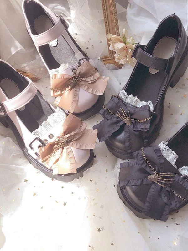 Sweet Lolita Shoes Bows Round Toe Flat Heel Faux Leather Polyester Daily Casual Black Lolita Shoes
