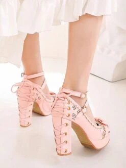 Be the first to review “Sweet Lolita Shoes Bows Round Toe Lace Up PU Leather Lolita Pumps” Cancel reply