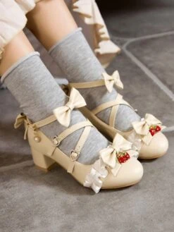 Be the first to review “Sweet Lolita Shoes Strawberry Bows PU Leather Chunky Heel Shoes” Cancel reply