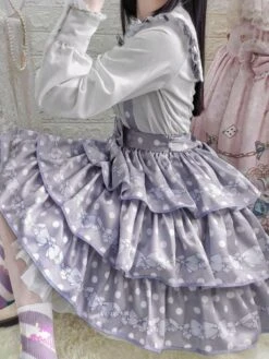 Sweet Lolita SK Light Sky Blue Lace Ruffles Polka Dot Bow Lace Lolita Skirts