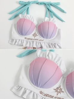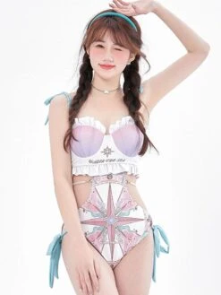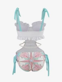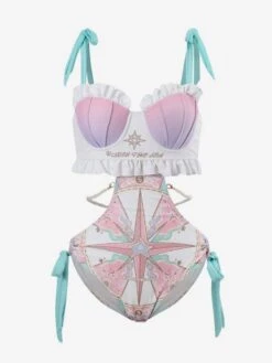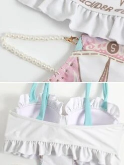 Sweet Lolita Swimsuit Fuchsia Pink Ruffles Floral Print Sleeveless Jumpsuit