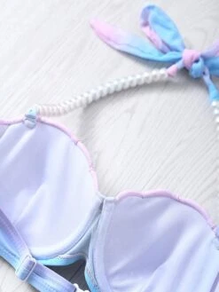 Sweet Lolita Swimsuit Light Sky Blue Ombre Pearls Sleeveless Top Pants