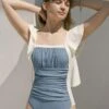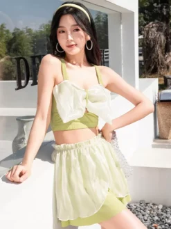 Sweet Lolita Swimsuits Black Bows Ruffles Sleeveless Skirt Top