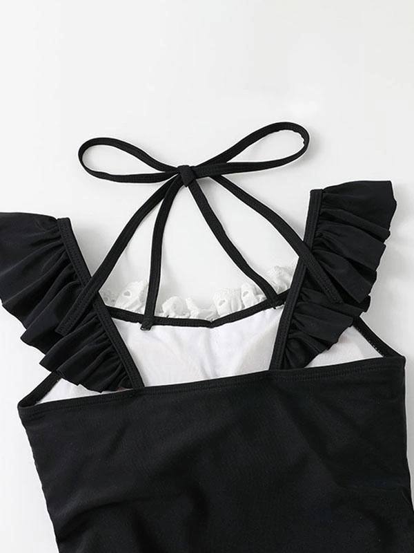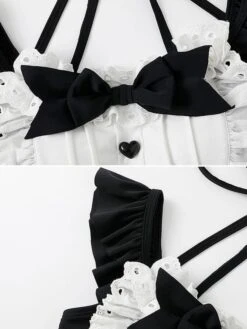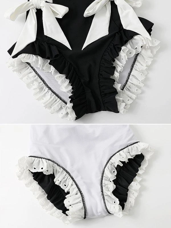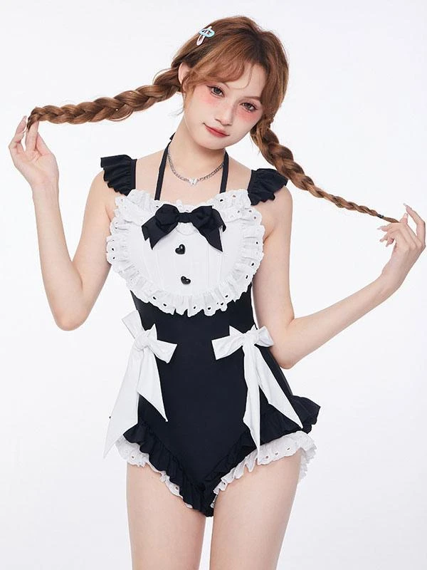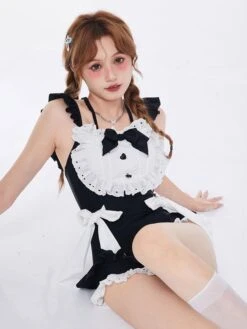 Sweet Lolita Swimsuits Black Ruffles Bows Sleeveless One Piece