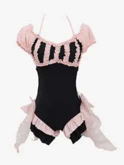 Sweet Lolita Swimsuits Black Ruffles Lace Up Sleeveless Jumpsuit