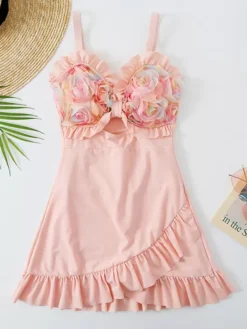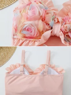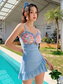 Sweet Lolita Swimsuits Light Sky Blue Ruffles Flowers Sleeveless Jumpsuit
