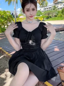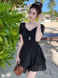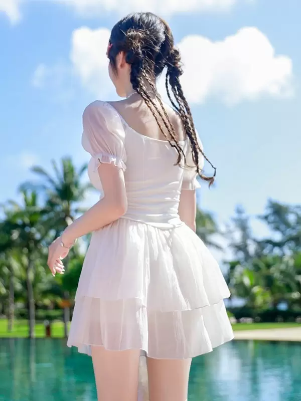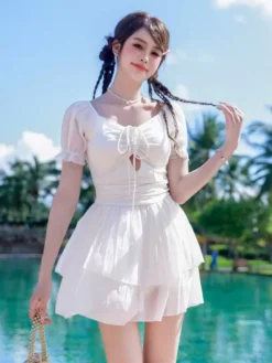 Sweet Lolita Swimsuits White Bows Ruffles Short Sleeves Jumpsuit