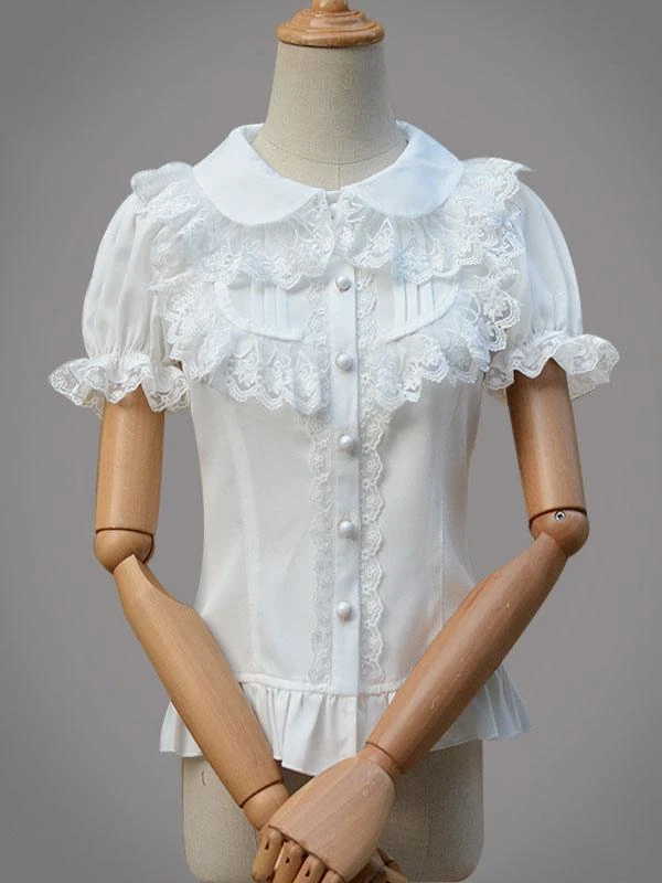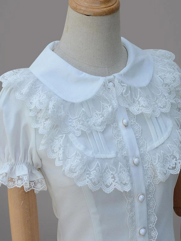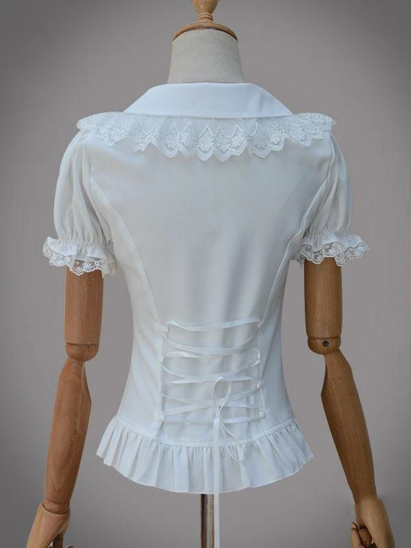 Sweet Lolita Top Chiffon Lace Ruffles Frill Trim White Lolita Blouse