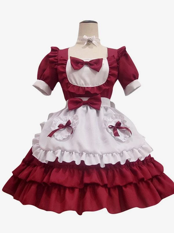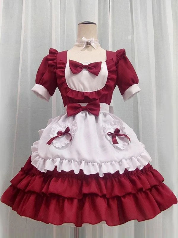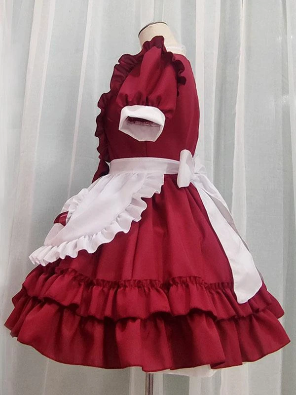 Sweet Maid Lolita Dress Polyester Ruffles Short Sleeves Dress