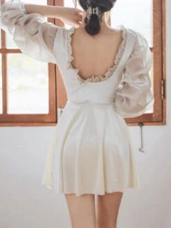 Sweet One Piece Swimsuit Lace Up Backless Long Sleeves White Lolita Cute Jumpsuit For Women