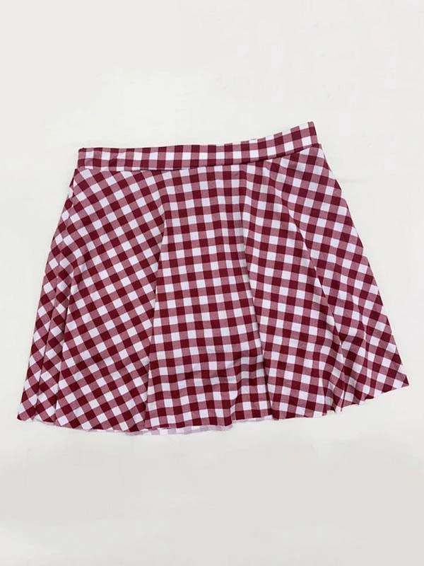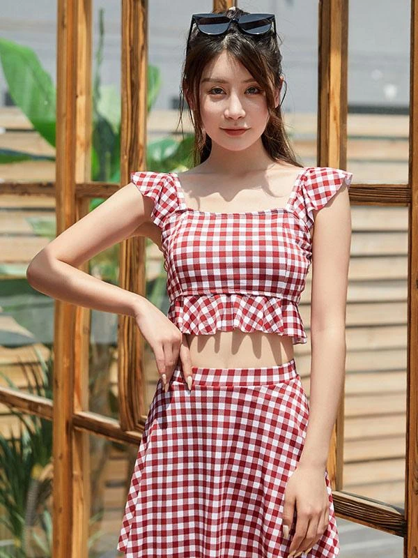 Sweet Swimsuits 2-Piece Set Plaid Ruffles Lolita Cute Bathing Suits For Women