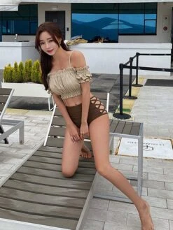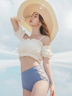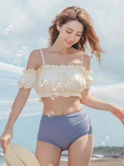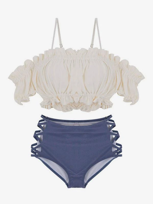 Sweet Swimsuits 2-Piece Set Ruffles Pants Kawaii Bathing Suits For Women