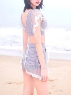 Sweet Swimsuits 3-Piece Set Ruffles Short Sleeve Lolita Cute Bathing Suits For Women