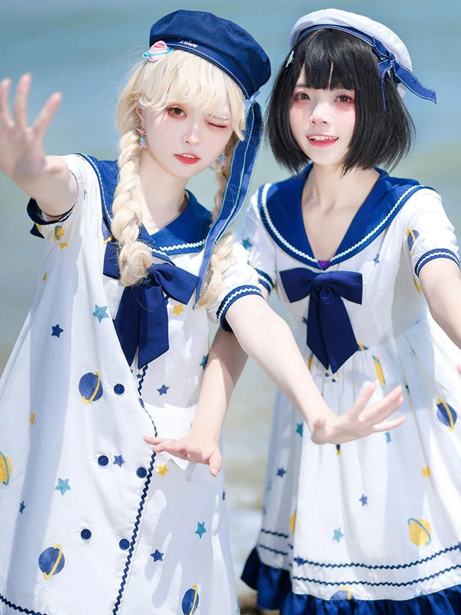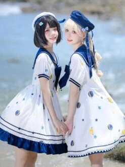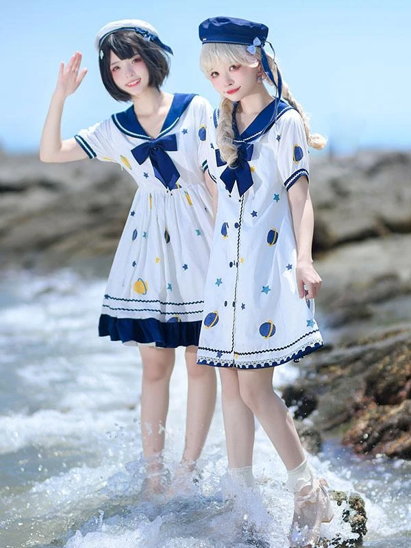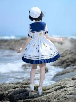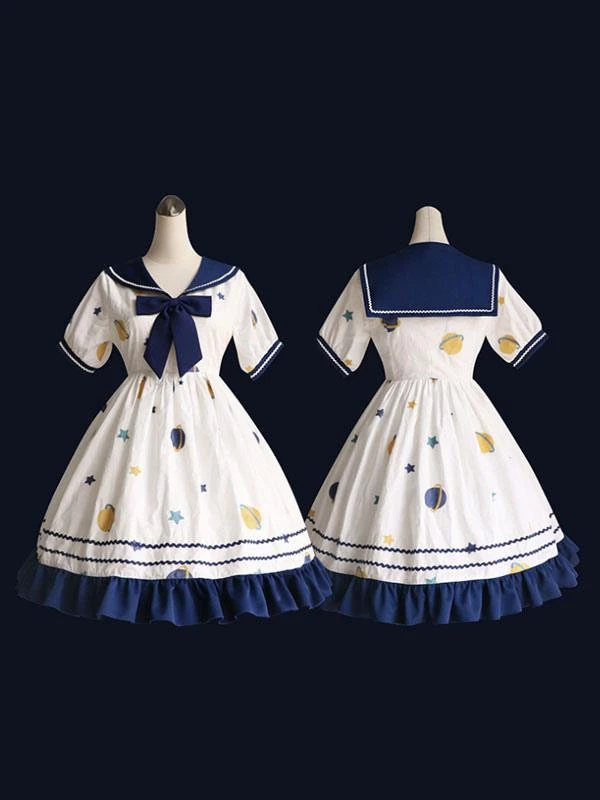 【umbrella Skirt】Sweet Lolita Dress Polyester Short Sleeves Dress Navy Style Lolita Dress