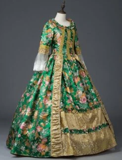 Victorian Dress Costume Prom Dress Green Retro Costumes Lace Bow Floral Print Rococo Dress Women Marie Antoinette Costume Halloween