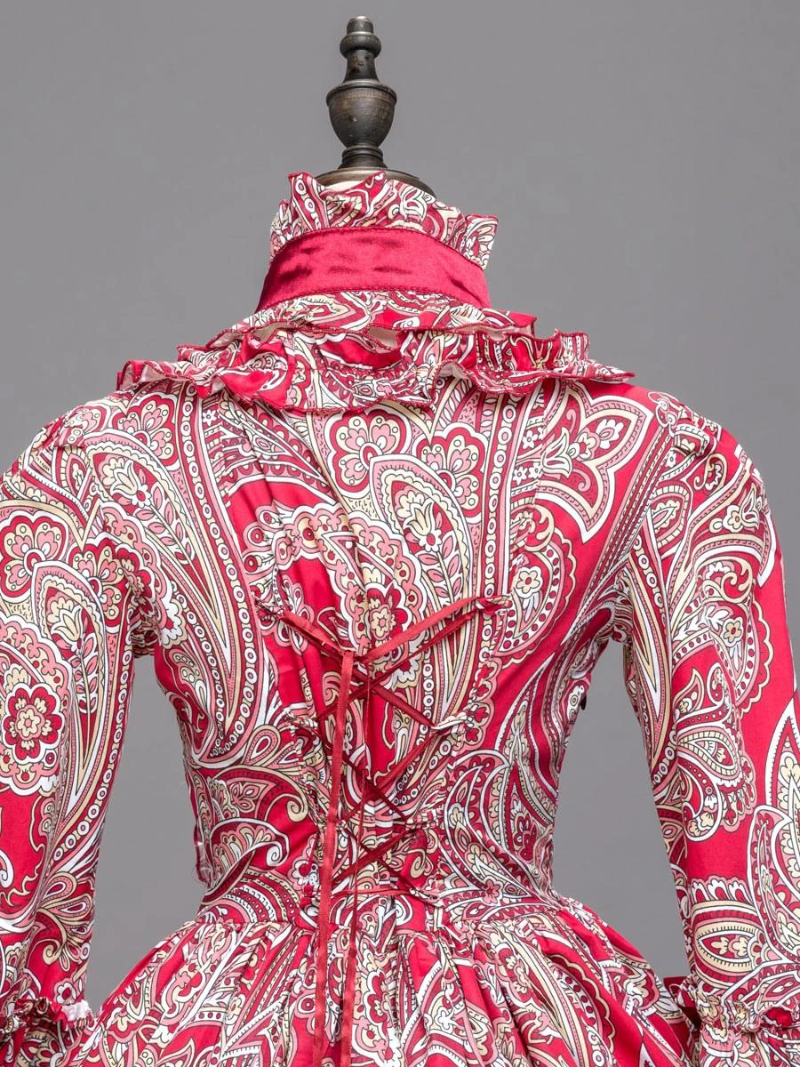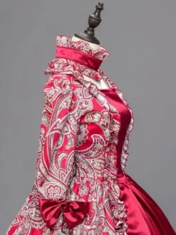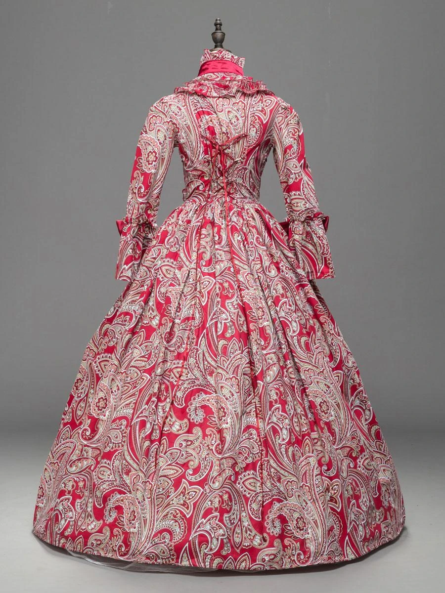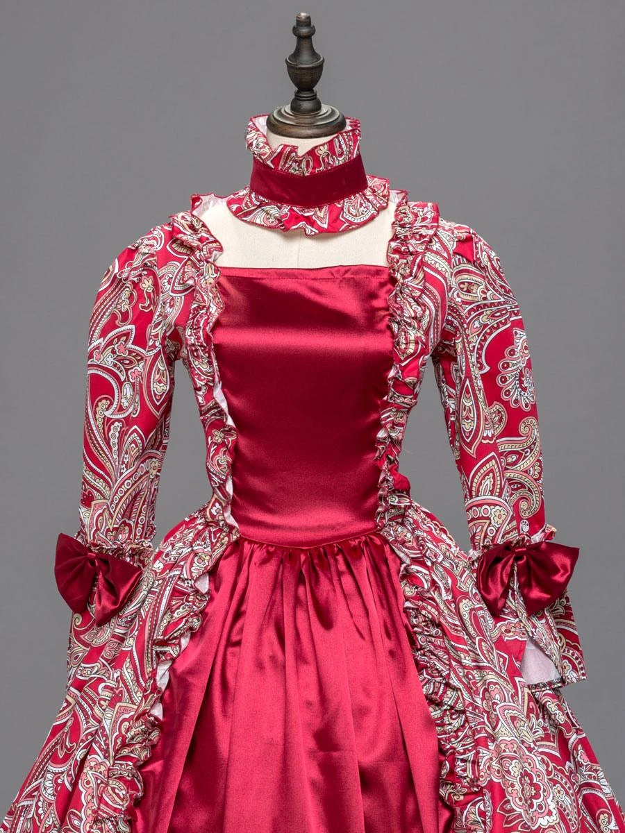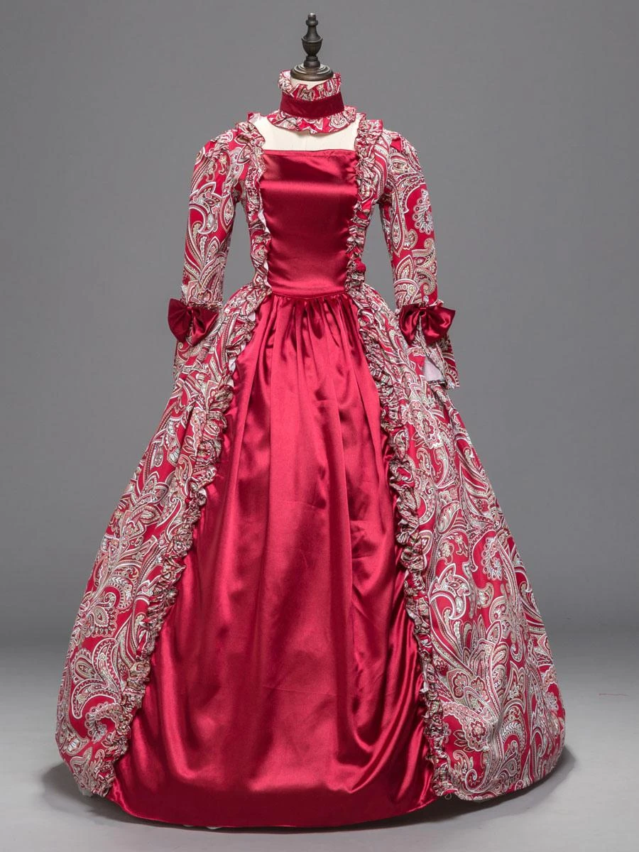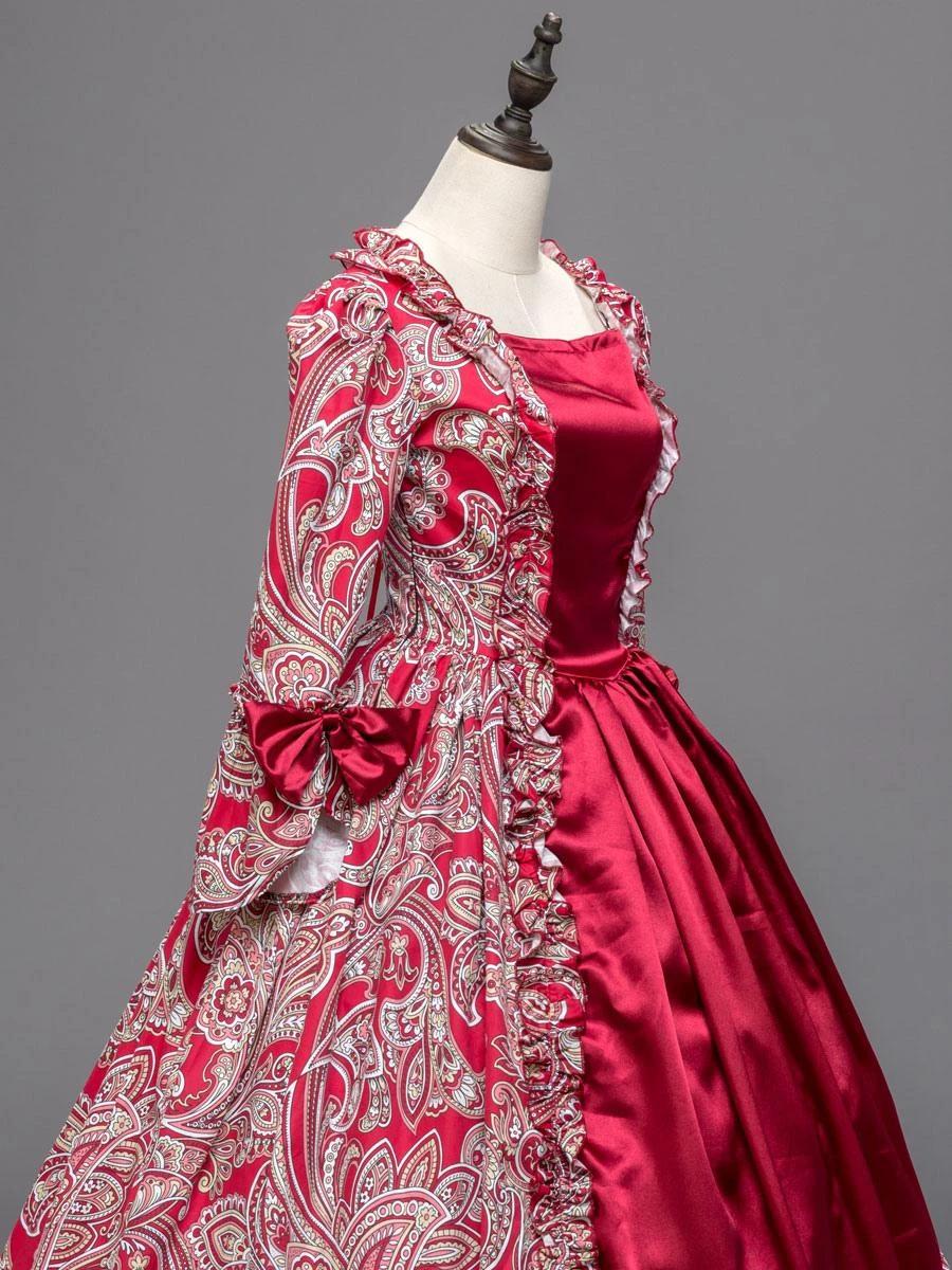 Victorian Dress Costumes Red Women’s Floral Print Bow Ruffle Long Sleeves Ball Gown With Choker Marie Antoinette Costume Masquerade Viactorian Era Clothings Costumes