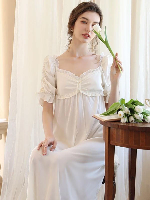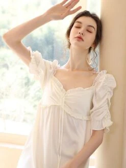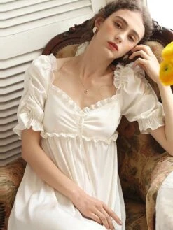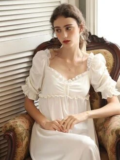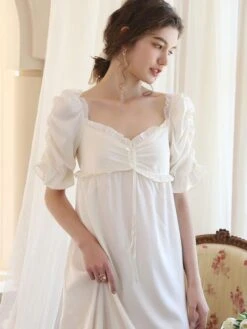 White Retro Empire Waist Dress Bridgerton Costumes Women Marie Antoinette Costume Polyester Shift Dress Vintage Vintage Clothing