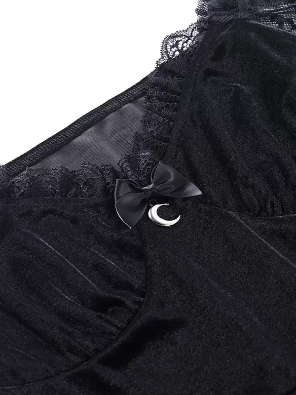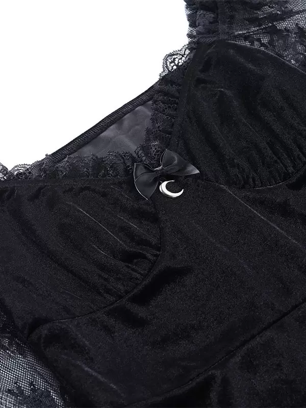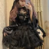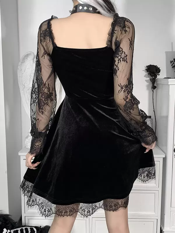 Women Black Dress Sweetheart Neck Long Sleeves Lace Polyester Gothic Dress
