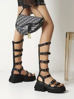 Be the first to review “Women’s Flatform Sandals Black Rivets PU Leather Gladiator Sandals” Cancel reply