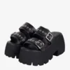 Women’s Flatform Sandals Black Rivets PU Leather Gladiator Sandals